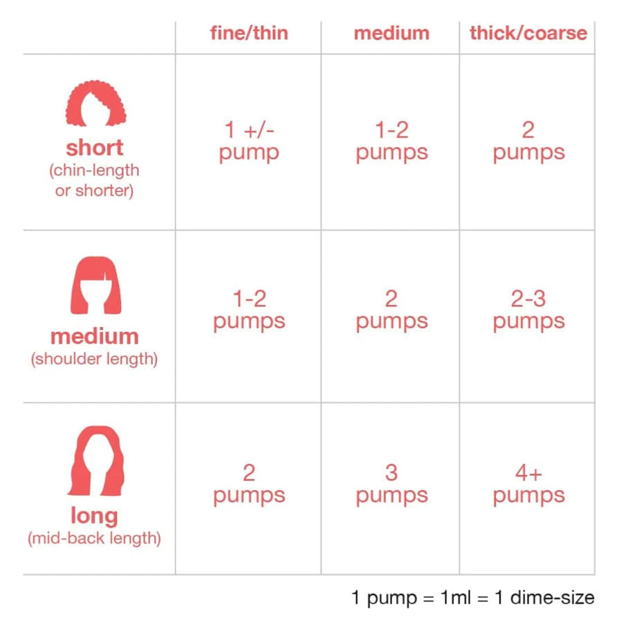 - Begin with 1 pump of K18 mask and add more as needed depending on length, thickness, and condition. Work evenly into hair from ends to roots, one pump at a time, maximum dosage is 3 pumps.