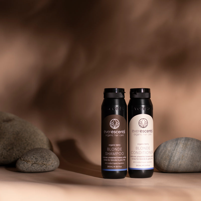 Finally a blonde shampoo without all the toxic purple & blue dyes! This luxurious shampoo tones your hair and reduces unwanted brassy yellow tones for blonde & grey hair, with the added benefits of Certified Organic ingredients & the natural colours from Red Sweet Potato & Blue Gardenia. The premium shampoo is fortified with Certified Organic Argan Oil, Vitamin E and Provitamin B5 which moisturise & add shine to your hair leaving it truly healthy.