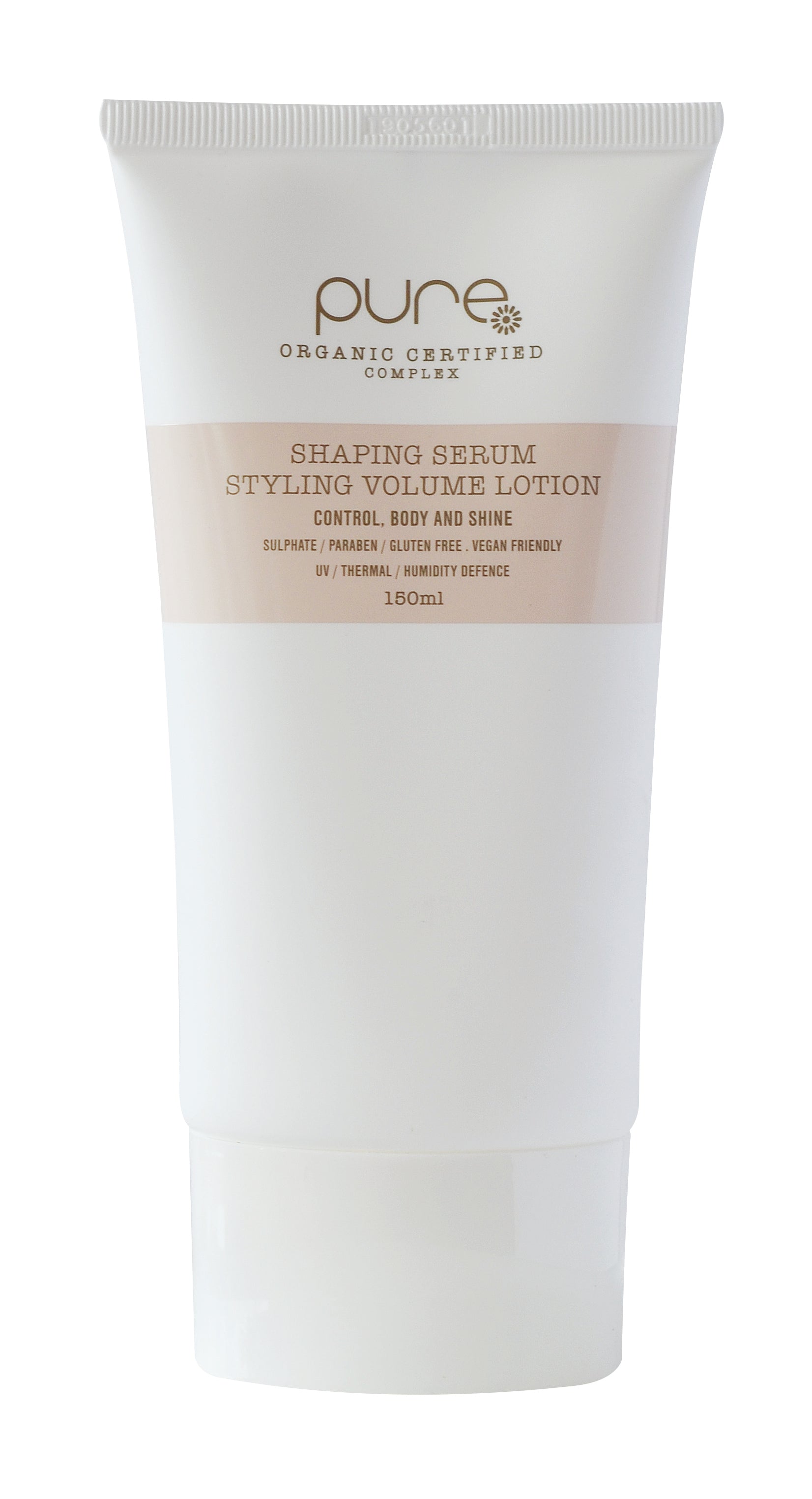 PURE SHAPING SERUM is a versatile spreadable serum which gives hair more body and shine. Controls frizz and provides a natural looking style. Exclusive ‘pure complex’TM (certified 100% organic extracts).