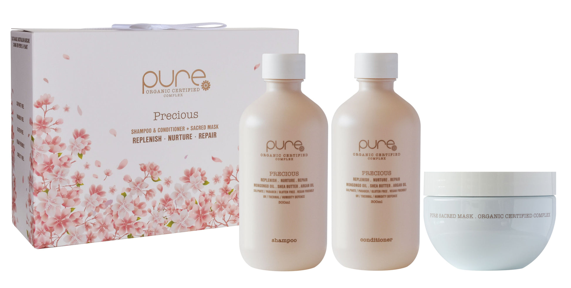PURE PRECIOUS nurturing shampoo with exclusive ‘pure complex’TM (certified 100% organic extracts) gently cleanses repairs, nourishes all fragile dry or weak hair types.